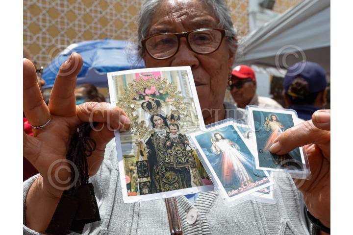 TOLUCA, ESTADO DE MÉXICO, 16JULIO2025.- Una mujer de la tercera edad devota de la Virgen del Carmen acudió a la Iglesia del Carmen en la ciudad de Toluca a misa por su celebración, llevando consigo escapularios para ser bendecidos. FOTO: CRISANTA ESPINOSA AGUILAR /CUARTOSCURO.COM