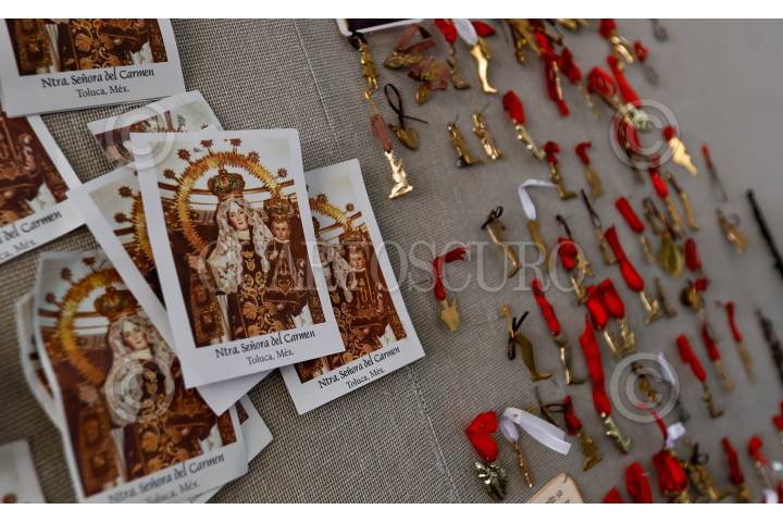 TOLUCA, ESTADO DE MÉXICO, 16JULIO2024.- Fieles católicos acudieron a la Iglesia del Carmen en la ciudad de Toluca para celebrar a la Virgen del Carmen y agradecer los favores recibidos, santa patrona de conductores, viajeros, bomberos, militares, pescadores, marineros, desde temprana hora imitaron las misas y fueron bendecidas imágenes, cuadros y escapularios, así como varios pasaron a rezar y dejar milagritos. FOTO: CRISANTA ESPINOSA AGUILAR /CUARTOSCURO.COM