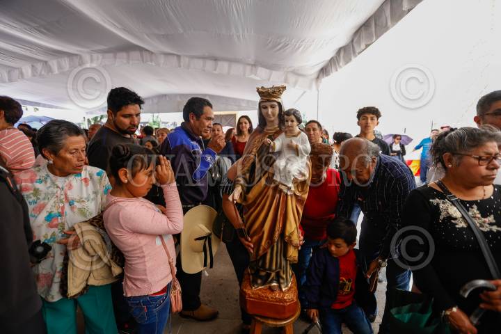 TOLUCA, ESTADO DE MÉXICO, 16JULIO2025.- Devotos de la Virgen del Carmen con imágenes de la Virgen acudieron a la Iglesia del Carmen en la ciudad de Toluca a misa por la celebración de la virgen. FOTO: CRISANTA ESPINOSA AGUILAR /CUARTOSCURO.COM