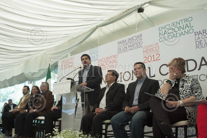 MÉXICO, D.F., 13OCTUBRE2012.- Miguel Ángel Van Dyck, Virginia Jaramillo, Ramón Sosamontes, Manuel Espino, Víctor Hugo Cirígo Jorge Carlos Cuervo, y Tere Vale, durante el Encuentro Nacional Ciudadano para iniciar la construcción de un Partido Político Nacional, en el restaurante Foresta. FOTO: MOISÉS PABLO /CUARTOSCURO.COM