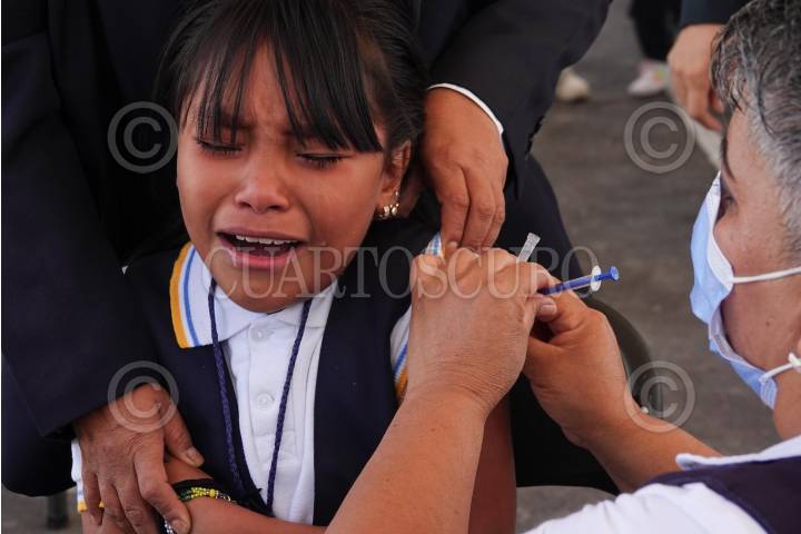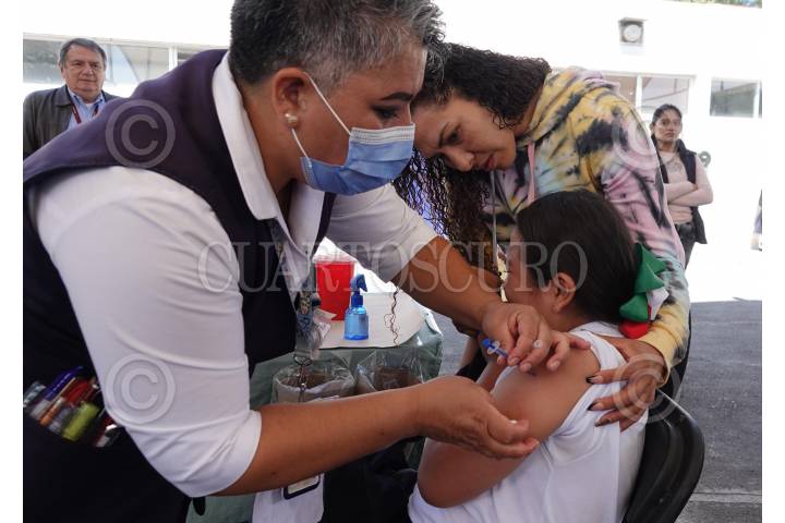 CIUDAD DE MÉXICO, 11SEPTIEMBRE2023.- En el marco de la Campaña de mitigación del rezago de esquemas de vacunación contra el Virus del Papiloma Humano, personal médico aplicó vacunas contra el VPH a alumnas de sexto grado de la Escuela Primaria “Estado de Michoacán". FOTO: GRACIELA LÓPEZ /CUARTOSCURO.COM