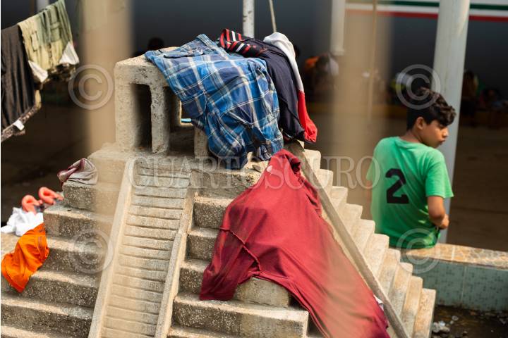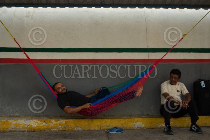 CIUDAD HIDALGO, CHIAPAS, 30ABRIL2019.- Migrantes centroamericanos esperan en el puente fronterizo para ser atendidos por las autoridades migratorias y empezar su pre registro para continuar su tramite de libre paso por territorio mexicano. Al menos 1300 personas se encuentran en él ahora albergue instalado dentro de las instalaciones de migración. Hace 17 días llegó Pedro Antonio a las oficinas de migración y obtuvo la ficha número 2533, aún sigue esperando su documentación. FOTO: ISABEL MATEOS /CUARTOSCURO.COM