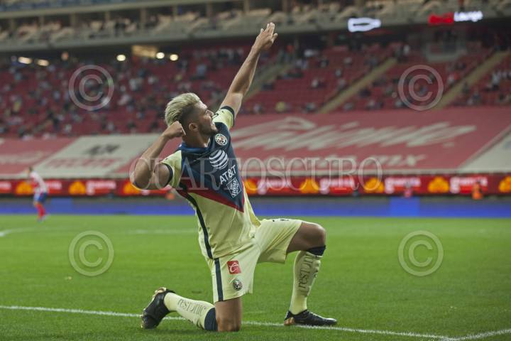 Henry Martin jugador del América, festeja una de sus anotaciones durante el clásico nacional que se llevo a cabo en el Estadio Akron.