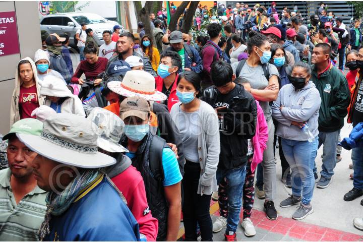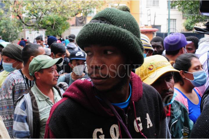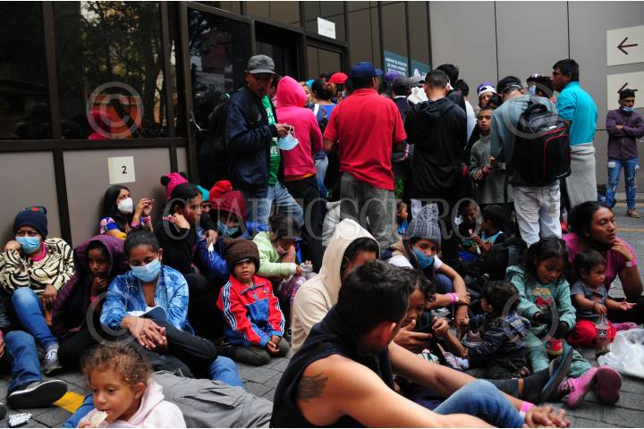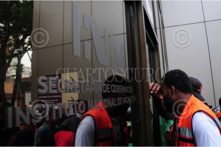 Migrantes esperan afuera del INM su turno para poder pasar y tramitar el permiso.