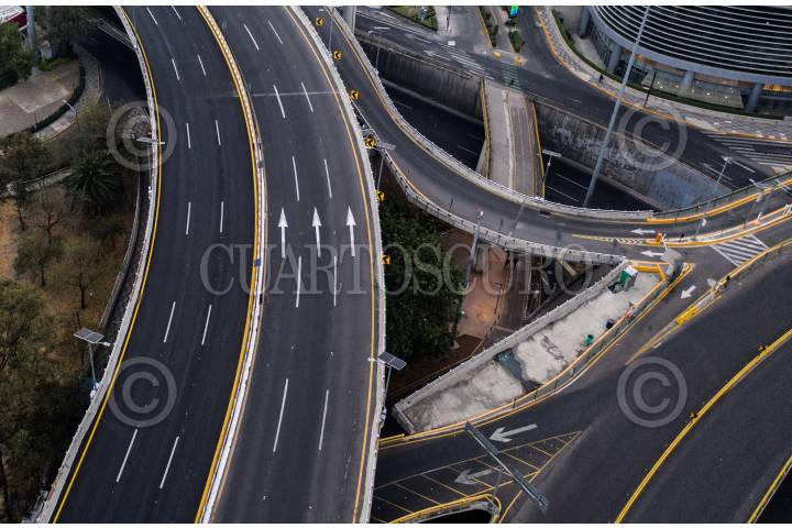 Vista aérea de Eje Central Lázaro Cárdenas que presenta mínima presencia vehicular durante la mañana del día festivo por navidad.
