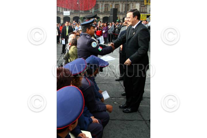 MÉXICO,D,F.,19SEPTIEMBRE2007.- Marcelo Ebrard Jefe de Gobierno del Distrito Feder entrega Escrituras y Créditos para el mejoramiento de Viviendas a policias y bomberos en el Zócalo Capitalino FOTO:SASHENKA GUTIERREZ/CUARTOSCURO.COM