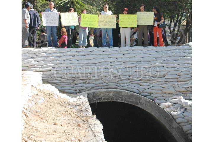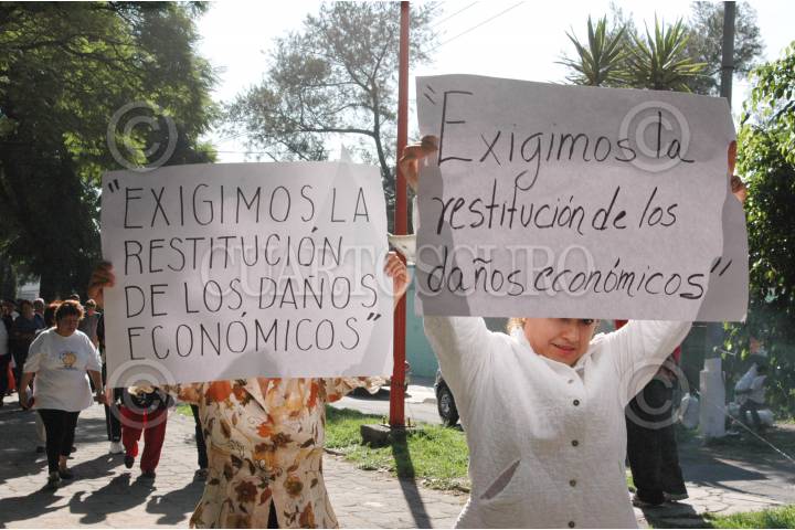 TLALNEPANTLA, ESTADO DE MÉXICO, 06OCTUBRE2009.- A un mes de colapsarse el emisor poniente en Valle Dorado, al menos 300 vecinos se manifestaron para exigir apoyo por parte del gobierno para la reparación de sus viviendas. FOTO: MARIO NULO/CUARTOSCURO.COM