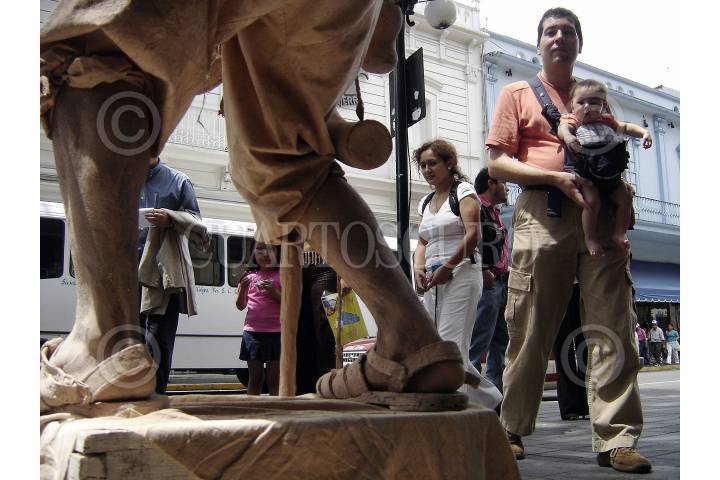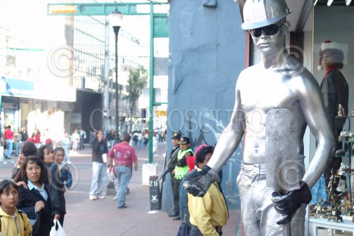 MÉXICO, D.F., 19ENERO2008.- En el cuadro del centro capitalino, las estatuas vivientes son admiradas por todo el publico en general, algunos hasta se animan a participàr en el espectaculo que ofrecen sin inportarles su discapacidad. FOTO: RICARDO CASTELAN/CUARTOSCURO.COM