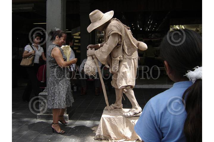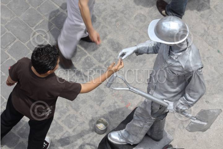 MÉXICO, D.F., 04JULIO2010.- Una estatua viviente interactua con un paseante en el centro de la ciudad. FOTO: RODOLFO ANGULO/CUARTOSCURO.COM