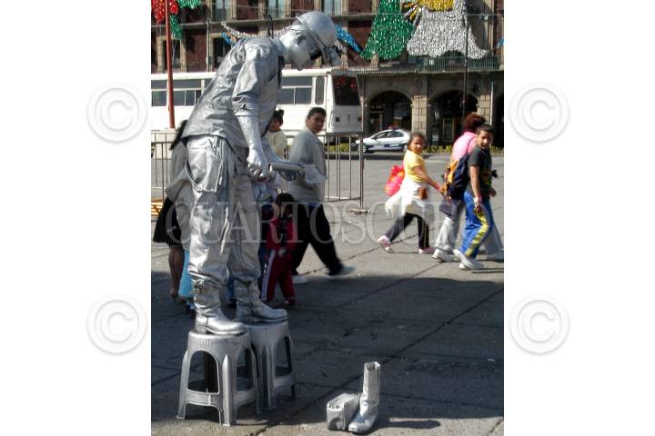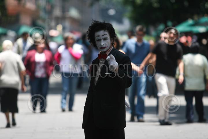 MÉXICO, D.F., 19JULIO2009.-Artistas callejeros y estatuas vivientes divirten a los turistas que pasean por el centro histórico de la ciudad de México. FOTO: ISAAC ESQUIVEL/CUARTOSCURO.COM