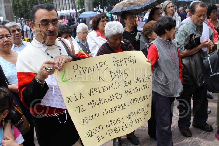MÉXICO, D.F., 29AGOSTO2010.- Un grupo de creyentes católicos realizaron un rosario viviente en defensa de la familia mexicana y en solidaridad con el Episcopado mexicano al termino de la homilía en el atrio de la Catedral Metropolitana. FOTO: RODOLFO ANGULO/CUARTOSCURO.COM