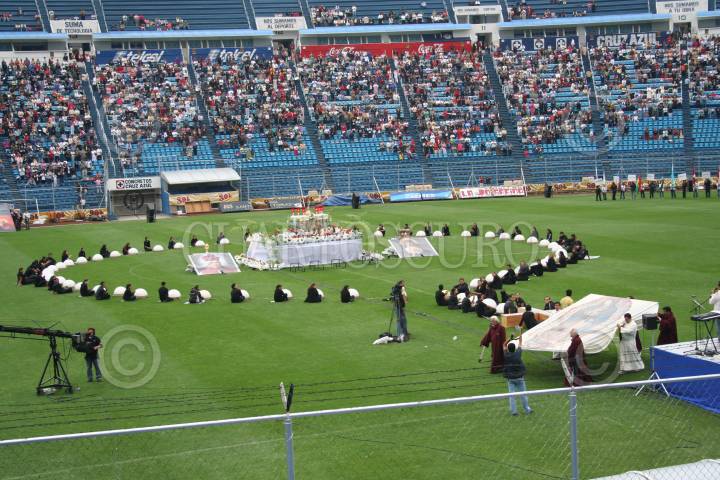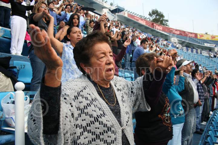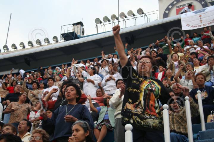 MÉXICO, D.F., 07OCTUBRE2006.- Fieles de la iglesias católica, durante la realización del XV Rosario viviente en el Estadio Azul. FOTO: ISAAC ESQUIVEL/CUARTOSCURO.COM