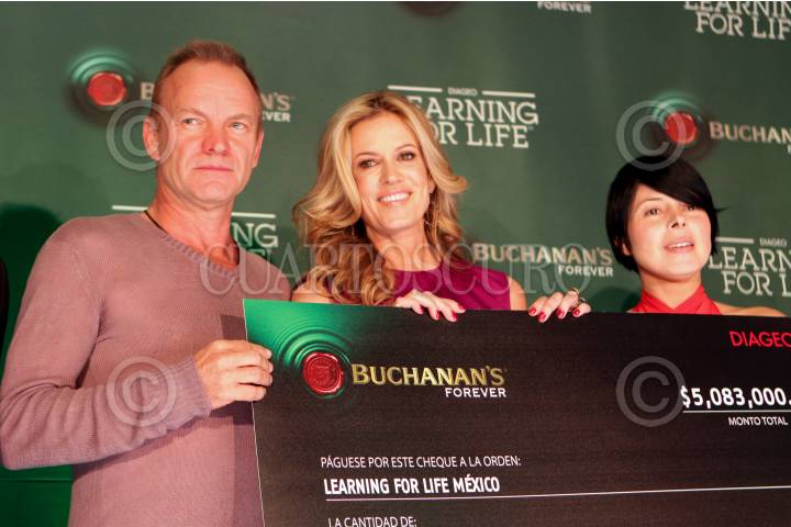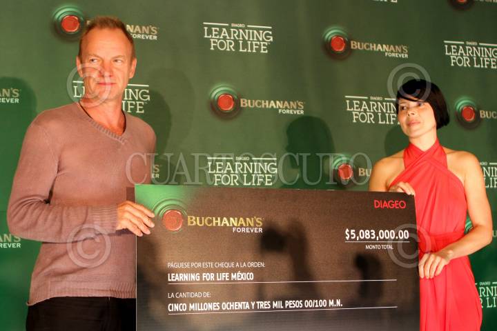 MÉXICO, D.F., 08MAYO2010.- El músico ingles Sting y la cantante mexicana de rock Ely Guerra durante una conferencia de prensa horas previas a la presentación del músico ingles que se realizará hoy por la noche en el Colegio de las Vizcainas en donde todos los fondos recaudados serán para la fundación “Learning for Life” en apoyo a la educación. FOTO: RODOLFO ANGULO/CUARTOSCURO.COM