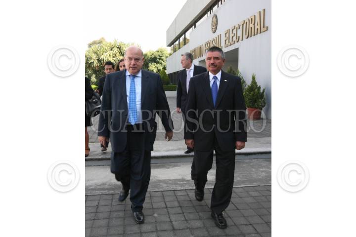 MÉXICO, D.F., 12NOVIEMBRE2008. José Miguel Insulza, Secretario General de la Organización de Estados Americanos y Leonardo Vladés Zurita, Presidente Consejero del IFE, firmaron el acuerdo marco de colaboración para promover la democracia electoral en América Latina, durante ceremonia a la que asistieron consejeros electorales y representantes de partidos políticos. FOTO: IFE/CUARTOSCURO.COM