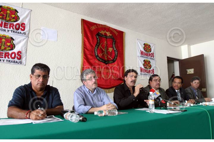 MÉXICO, D.F., 23ABRIL2008.- Jorge Campos, integrante FITIN, Benjamín Davis, AFL CIO, Jorge Almeida, FITIN, Carlos Pavón, secretario de asuntos politicos del Sindicato Minero , Juan Luis Zuñiga Velazquez, vocal del consejo de vigilancia y justicia del Sindicato de Mineros y Carlos de Buen, abogado, ofrecieron una conferencia para exigir respeto por derecho sindicales en nuestro país. FOTO: MOISÉS PABLO/CUARTOSCURO.COM