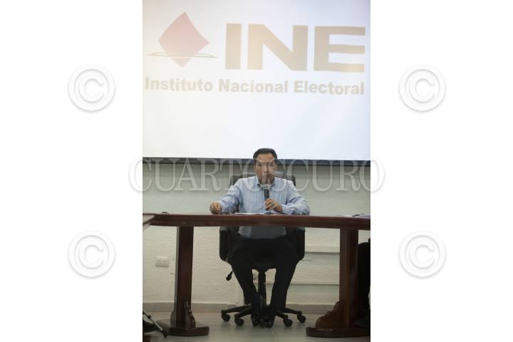 VILLAHERMOSA, TABASCO, 08ABRIL2014.- Jesús Lule Ortega, Vocal Ejecutivo de la Junta local del Instituto Nacional Electoral, dio a conocer en la sala audiovisual de dicha dependencia electoral, explica la transformación de lo que fuera el IFE, por lo que comenzaran las modificaciones en membretes y documentos oficiales. Así mismo indico que las identificaciones electorales con las antiguas siglas continuaran vigentes e irán desapareciendo paulatinamente, ahí también se tomo protesta a los demás vocales. FOTO: MARCO POLO GUZMÁN HERNÁNDEZ /CUARTOSCURO.COM