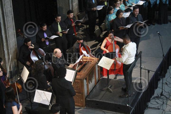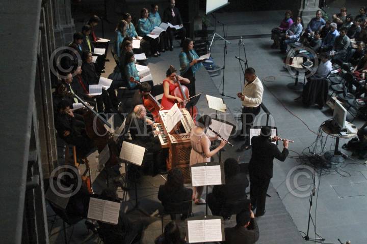 MÉXICO, D.F., 05SEPTIEMBRE2015.- Integrantes del Ensamble Escénico Vocal del Sistema Nacional del Fomento Musical presentaron un concierto en el Antiguo Palacio del Arzobispado, para presentar "La pasión según San Juan", obra compuesta por Johann Sebastian Bach quien fuera fuente de inspiración e influencia para posteriores compositores y músicos. FOTO: DANIEL HUERTA /CUARTOSCURO.COM