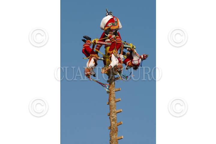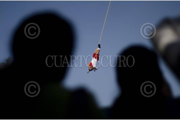 TAJÍN, VERACRUZ, 26FEBRERO2009.- En la Zona Arqueológica de Peralta, en Guanajuato, se practica el Rito del Volador, relacionado con la región Huasteca, el ritual de los voladores también fue practicado durante la época prehispánica en sitios del Bajío. FOTO: ALFREDO LÓPEZ/CONACULTA/CUARTOSCURO.COM