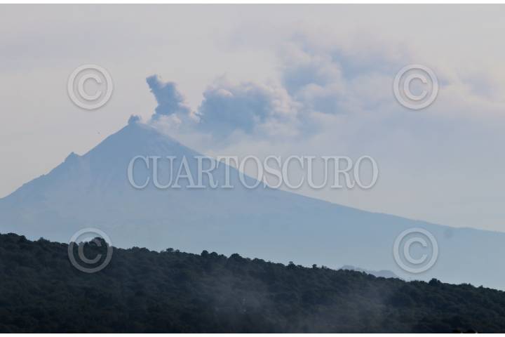 CUERNAVACA, MORELOS, 28DICIEMBRE2024.- El cielo despejado de esta mañana permite mirar el volcán Popocatépetl y su actividad desde la capital de Morelos. El volcán ha tenido una actividad incesante desde hace varias semanas, esta mañana la fumarola de agua, pequeñas cantidades de ceniza y gases volcanicos se dirige al sureste del estado de Puebla. FOTO: MARGARITO PÉREZ RETANA/CUARTOSCURO.COM