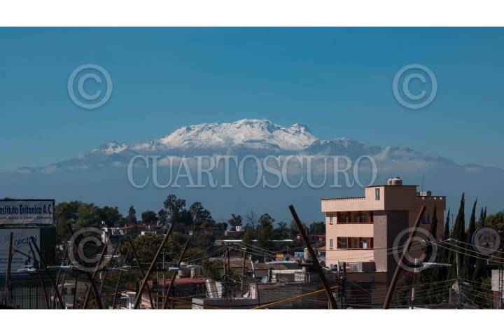 CIUDAD DE MÉXICO, 13ENERO2025.- El volcán Iztaccíhuatl es visible está mañana desde el oriente de la capital. FOTO: GRACIELA LÓPEZ/CUARTOSCURO.COM