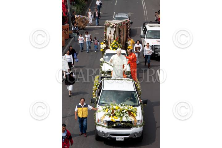 MÉXICO, D.F., 25JUNIO2011.- Cientos de católicos protagonizaron la "Peregrinación por la Paz", que partió de la ex-glorieta de Peralvillo a la Basílica de Guadalupe. Los fieles llevaron una figura del beato Juan Pablo Segundo y el Cardenal Norbeto Rivera oficio una misa para la ocasión. FOTO: MOISÉS PABLO/CUARTOSCURO.COM