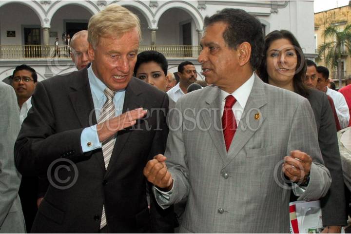 VERACRUZ, VERACRUZ. 31OCTUBRE2008.- Le fueron entregadas las llaves de la ciudad al presidente de la cámara alta de la república federal de Alemania y alcalde de la ciudad Hansentica de Hamburgo, Ole Von beust, quien junto a un grupo de inversionistas alemanes realiza una gira por América latina. El evento fue presidido por el alcalde de Veracruz, Jon RementerÌa Sempé, y como invitado especial el gobernador del estado, Fidel Herrera Beltron. FOTO: JOSE CANDELARIO/CUARTOSCURO.COM