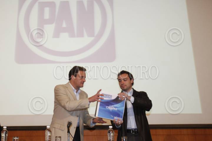 MÉXICO, D.F., 03DICIEMBRE2011.- José Espina Von Roehrich, presidente de la Comisión Nacional de Elecciones del PAN, recibió las firmas de apoyo para resolver su registro como precandidatos ante la Comisión Nacional de Elección del PAN. En la imagen el diputado Fernando Rodríguez Doval entregó las carpetas de firmas de Ernesto Cordero. FOTO: MOISÉS PABLO/CUARTOSCURO.COM