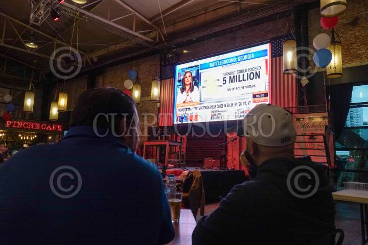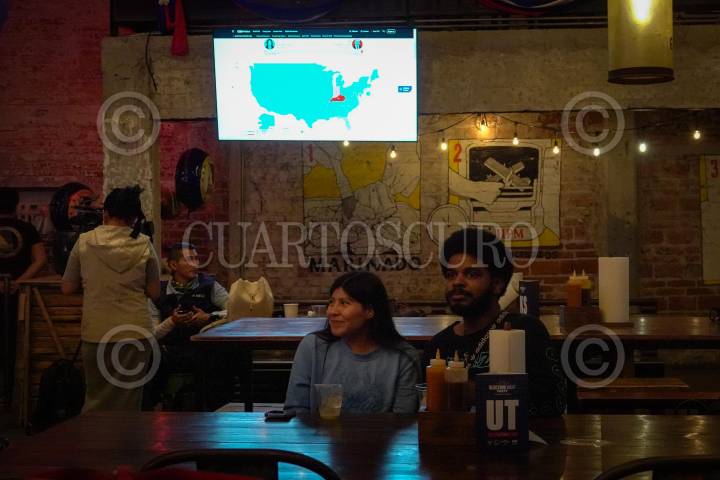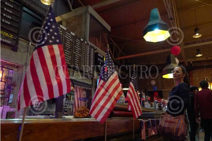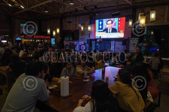 CIUDAD DE MÉXICO, 05NOVIEMBRE2024.- Estadounidenses arraigados en México observaron las elecciones en el Restaurante Pinche Gringo BBQ Warehouse en Polanco. FOTO: ROGELIO MORALES /CUARTOSCURO.COM