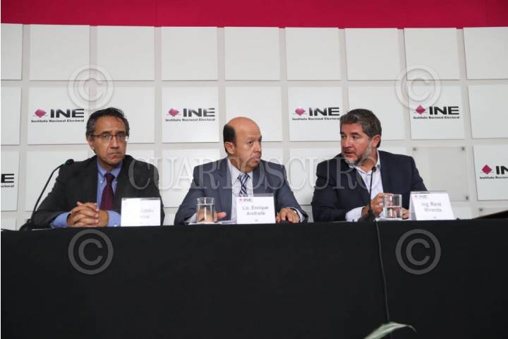 CIUDAD DE MÉXICO, 29AGOSTO2017.- Rubén Álvarez Mendiola, coordinador Nacional de Comunicación Social, Enrique Andrade González, consejero electoral y presidente de la Comisión temporal del Voto de los Mexicanos Residentes en el Extranjero, y René Miranda Jaimes director ejecutivo del Registro Federal de Electores y Secretario técnico de la Comisión, ofrecieron conferencia de prensa para hablar del Voto de los Mexicanos Residentes en el Extranjero. FOTO: CUARTOSCURO.COM