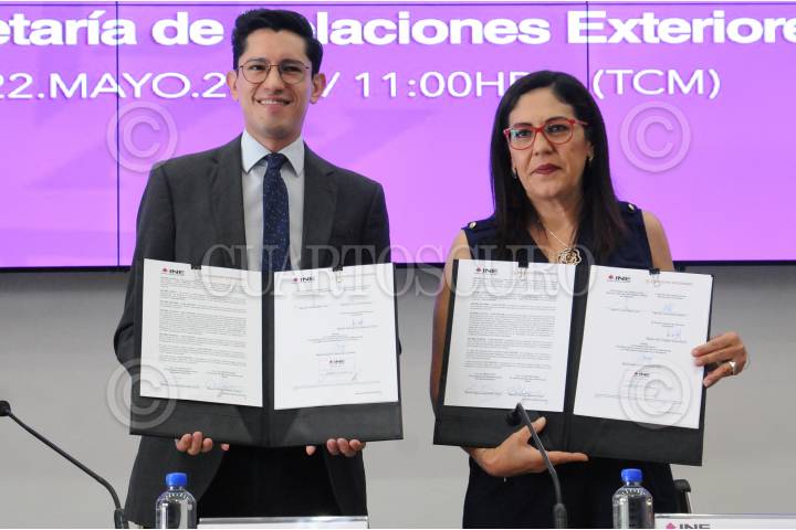 Roberto Velazco, director para América del Norte de la SRE, firmó el acuerdo de colaboración con el INE para apoyar al instituto durante los comicios electorales.