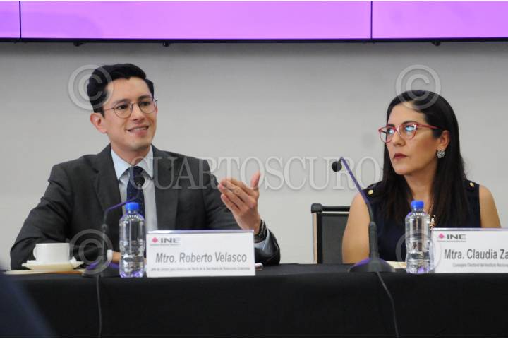 Claudia Zavala, consejera del INE, acompañada por Roberto Velazco, director para América del Norte de la SRE, presentaron el panel donde los votantes qué radican en el extranjero, ejerzan su derecho en los próximos comicios.