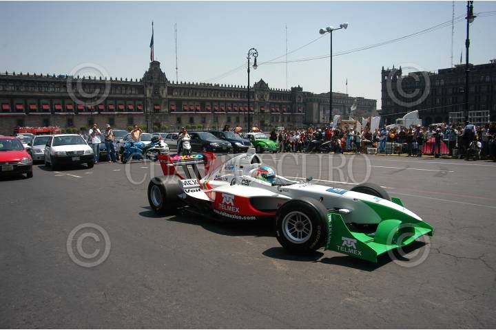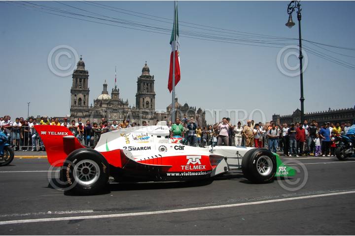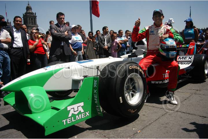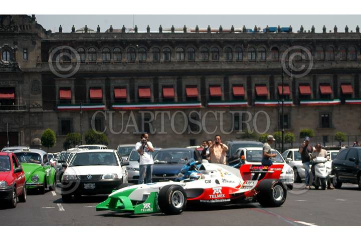 MÉXICO D.F. 19MARZO2007.- El piloto mexicano Salvador Durán, realizo par de vueltas con su auto Formula A1 por el Zócalo, esto como una forma de publicitar la proxima carrera en la cual participara. FOTO: GUILLERMO PEREA/CUARTOSCURO.COM