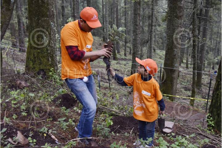 OCAMPO, MICHOACÁN, 22JULIO2017.- La alianza entre la organización WWF y la Fundación TELMEX TELCEL, llevaron a cabo la jornada de reforestación 2017 en el ejido "El Rosario", el cual es un lugar clave en la reserva de la biosfera mariposa monarca. En actividades de reforestación se sembraron aproximadamente 15 oyameles en donde se reunieron 850 personas entre los que se encontraban niños, jóvenes y adultos. FOTO: MARIO JASSO /CUARTOSCURO.COM