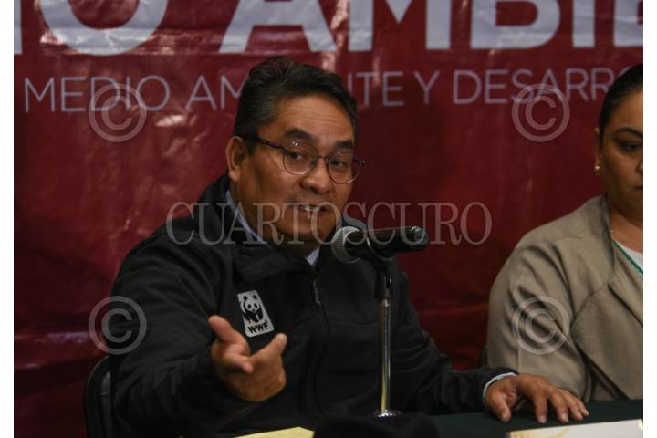 TOLUCA, ESTADO DE MÉXICO, 29FEBRERO2024.- Biólogo Eduardo Rendón Salinas Director del Programa Ecosistemas Terrestres de WWF México en conferencia de prensa informó que se instalarán cuatro viveros regionales en el Estado de México con el objetivo de preservar especies polinizadoras que llegan a la entidad mexiquense entre ellas la mariposa monarca, que se ha visto disminuida en su población. FOTO: CRISANTA ESPINOSA AGUILAR /CUARTOSCURO.COM