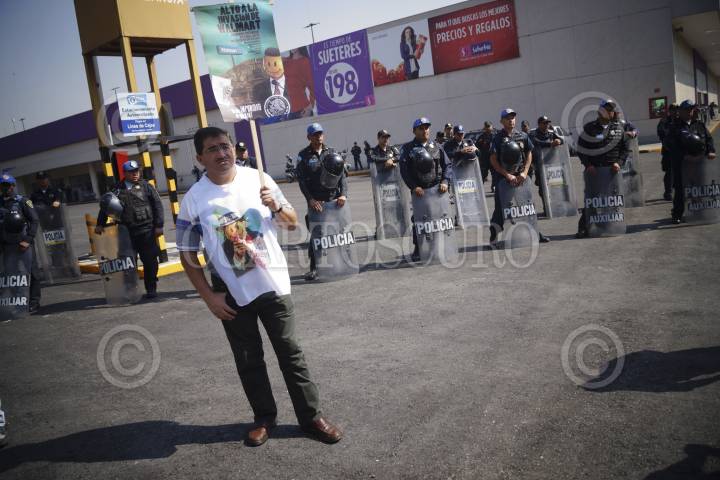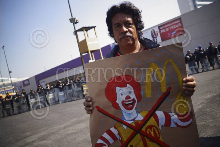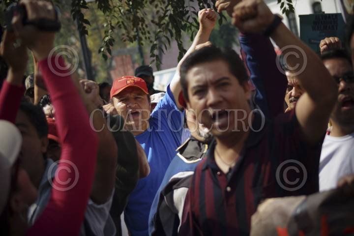 MÉXICO, D.F., 22NOVIEMBRE2013.- Integrantes de organizaciones sociales como el Sindicato Mexicano de Electricistas y la Red de Organizaciones Sociales contra los Abusos y la Impunidad de Wall-Mart, realizaron una protesta a las afueras del Centro comercial Buena vista donde se encuentra un una tienda Wall-Mart, para protestar contra esta tienda comercial que consideran "se ha impuesto pasando por encima de los intereses y bienestar de numerosas comunidades, destruyendo en muchos lugares el medio ambiente y el patrimonio cultural de la ncación". FOTO: PEDRO ANZA /CUARTOSCURO.COM