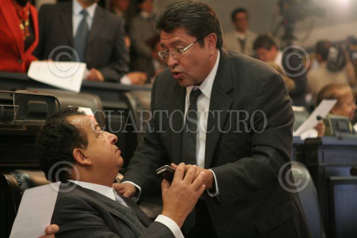 MÉXICO, D.F., 17FEBRERO2011.- Los senadores Luis Walton Aburto, Convergencia, y Ricardo Monreal Ávila, PT, durante la sesión en la Cámara de Senadores. FOTO: MOISÉS PABLO/CUARTOSCURO.COM