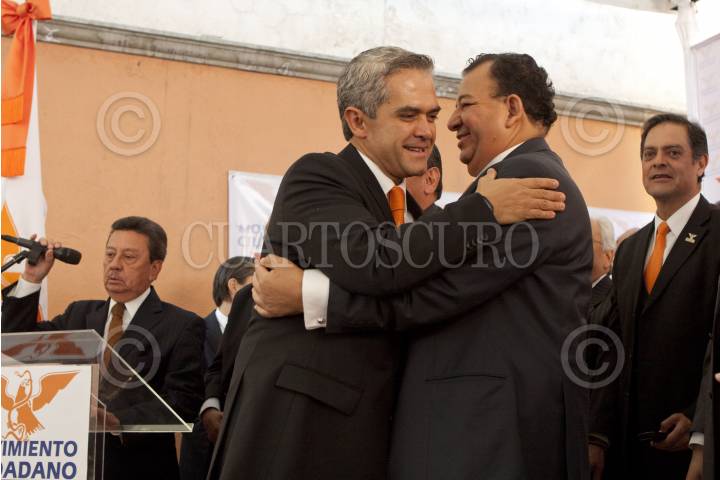 MÉXICO, D.F., 03FEBRERO2012.- La dirigencia del Movimiento Ciudadano, integrada por Dante Delgado, senador, Luis Walton Aburto, dirigente, Cuauhtémoc Velasco Oliva, coordinador ciudadano, y Alejandro Chanona, arroparon a Miguel Ángel Mancera, quien se registró como su precandidato a la Jefatura de Gobierno. El ex-procurador ha hecho lo propio con el PT y PRD. FOTO: MOISÉS PABLO/CUARTOSCURO.COM