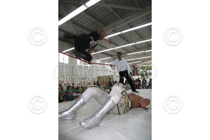 CIUDAD DEL CARMEN, CAMPECHE18FEBRERO2007.- En la arena de la CANACO se efectuó una presentación de lucha libre del Consejo Mundial de Lucha Libre, donde la figura estelar es el Místico conteniendo contra Black Warrior. FOTO: MARCO POLO GUZMÀN HERNÀNDEZ/CUARTOSCURO.COM