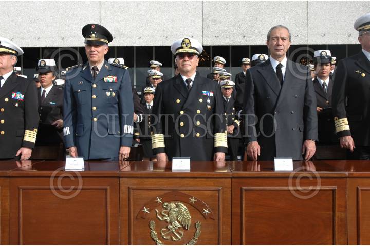 MEXICO, D.F. 16JULIO2005.- Gerardo Vega García, Secretario de Defensa Nacional, Marco Antonio Peyrot, Secretario de Marina Armada de México, y Pedro Cerisola, Secretario de Comunicaciones y Transportes, estuvieron presentes en la clausura y apertura de cursos del sistema educativo naval. FOTO: Iván Stephens/CUARTOSCURO.COM