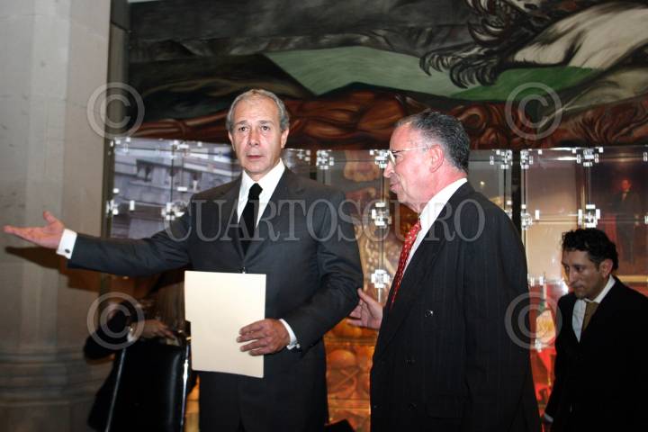 MEXICO, D.,F., 29MAYO2006.- Mariano Azuela Rivera, ministro presidente de la Suprema Corte de Justicia y Pedro Cerisola Weber, Secretario de Domunicaciones, precidieron la ceremonia del lanzamiento del canal de televisión del poder judicial "Canal Judicial" en una ceremonia realizada en la sede del máximo organo de justicia del país. FOTO: Moisés Pablo/CUARTOSCURO.COM