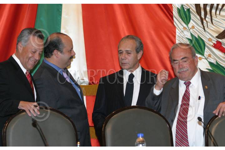 MÉXICO, D.F., 19OCTUBRE2006.- Oscar Guztavo Cárdenas Moroy, Cesar Duarte Jaquez, Secretario de Comisón, Presidente de la Comisón de Transporte, Pedro Cerisola y Weber, Secretario de Comunicación y Transporte y Ruben Aguilar Jímenez, durante la comparecencia del titular de las comunicaciones federales en la Cámara de Diputados. FOTO: MOISÉS PABLO/CUARTOSUCOR.COM