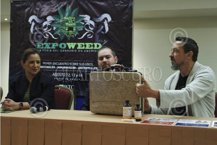 CIUDAD DE MÉXICO, 10AGOSTO2016.- Julio Zeni, coeditor de la revista Cañamo, Leopoldo Rivera, organizador de la ExpoWeed México, Martha Tagle, senadora de la república, Raúl Elizalde, de la FUndación por Grace y Dion Markgraaff, director en México de General Hemp, durante la conferencia de presentación de la ExpoWeed, Feria Internacional del Cannabis que se realizará por primera vez en el país. A partir del 12 de agosto y por 3 días, más de 30 expositores de diversos artículos derivados del cannabis y una veintena de especialistas internacionales, quienes hablarán de las últimas investigaciones científicas en torno a la misma. L a expo se realizará 12, 13 y 14 de agosto de 10 a 21 hrs en el WTC. En la imagen, medicamento a base de marihuana. FOTO: ADOLFO VLADIMIR /CUARTOSCURO.COM