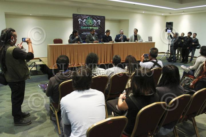 CIUDAD DE MÉXICO, 10AGOSTO2016.- Julio Zeni, coeditor de la revista Cañamo, Leopoldo Rivera, organizador de la ExpoWeed México, Martha Tagle, senadora de la república, Raúl Elizalde, de la FUndación por Grace y Dion Markgraaff, director en México de General Hemp, durante la conferencia de presentación de la ExpoWeed, Feria Internacional del Cannabis que se realizará por primera vez en el país. A partir del 12 de agosto y por 3 días, más de 30 expositores de diversos artículos derivados del cannabis y una veintena de especialistas internacionales, quienes hablarán de las últimas investigaciones científicas en torno a la misma. L a expo se realizará 12, 13 y 14 de agosto de 10 a 21 hrs en el WTC. FOTO: ADOLFO VLADIMIR /CUARTOSCURO.COM