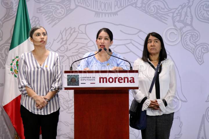 CIUDAD DE MÉXICO, 21MAYO2019.- Las diputadas Wendy Briceño Zuloaga, Rocío Villarauz Martínez y Miroslava Sánchez Galván, ofrecieron una conferencia de prensa para denunciar violencia política de género del candidato del PAN a la alcaldía de Mexicali hacia la candidata de Morena, Marina del Pilar Ávila Olmeda. FOTO: CUARTOSCURO.COM