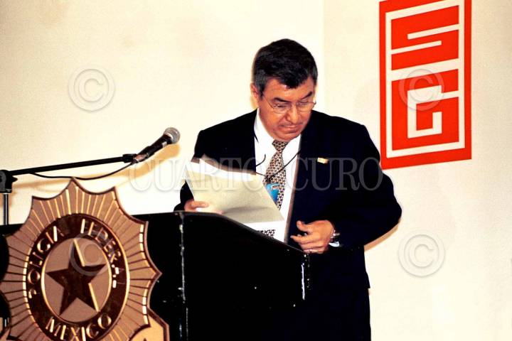 Seminario Internacional "La Participación ciudadana en la prevención del delito y la modernización de la seguridad pública", organizada por la Policia Federal Preventiva (PFP) asi como la secretaria de Gobernación. Wilfredo Robledo director del la PFP después de su discurso. FOTO: Victoria Valtierra/CUARTOSCURO.COM