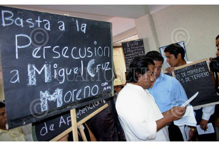 OAXACA, OAXACA, 27OCTUBRE2008.-Miguel Cruz Moreno, militante del CIPO-APPO, acusado de "encubrir" el asesinato de Brad Will, se presentó este lunes ante la Secretaria judicial del Juzgado 4º de lo Penal para rechazar el señalamiento. El Gobierno lo mató, dijo. FOTO: MAX NÚÑEZ/CUARTOSCURO.COM