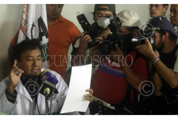 MÉXICO, D.F., 20OCTUBRE2008.- La Comisión Nacional de Derechos Humanos presentó un informe sobre el caso del periodista estadounidense Bradley Roland Will y reiteró que la Procuraduría General de la República cometió conductas irregulares y omisiones durante la investigación acerca de su muerte durante el conflicto magisterial en Oaxaca hace dos años. En la imagen, el doctor Epifanio Salazar Araiza muestra la trayectoria del segundo disparo que dio al camarógrafo. FOTO: ISAAC ESQUIVEL/CUARTOSCURO.COM