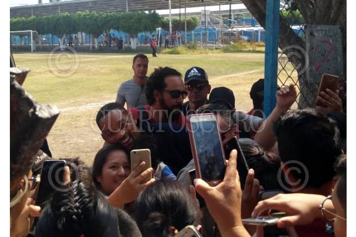 YAUTEPEC, MORELOS, 17ABRIL2019.- Will Smith saluda a la gente que se acercó al campo de futbol del poblado de Oacalco, donde aterrizo el helicóptero que lo traslada. El actor estadunidense filma locaciones para la película Bad Boys for Life en la ex hacienda de Oacalco. FOTO: CORTESIA /CUARTOSCURO.COM