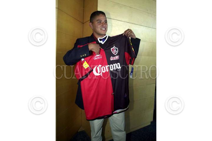 Wilmer Velázquez, nuevo refuerzo de los Zorros del Atlas, a su llegada al aeropuerto Internacional de la ciudad de México. FOTO: Alberto Valdéz/CUARTOSCURO.COM