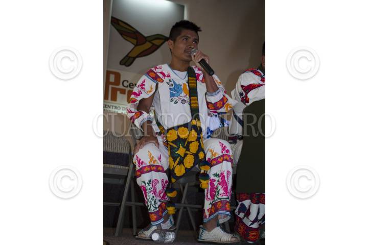 MÉXICO, D.F., 08NOVIEMBRE2012.- Lucio López Carrillo, Consejo de Vigilancia de Banco San Hipolito; durante la coferencia del Consejo Regional Wixarika, donde se exige que se prohíba cualquier actividad minera y se reconozcan los derechos de su pueblo, asi como también de los habitantes de Wirikuta, en el Centro de Derechos Humanos Miguel Agustín Pro Juárez. FOTO: SANDRA PÉREZ /CUARTOSCURO.COM